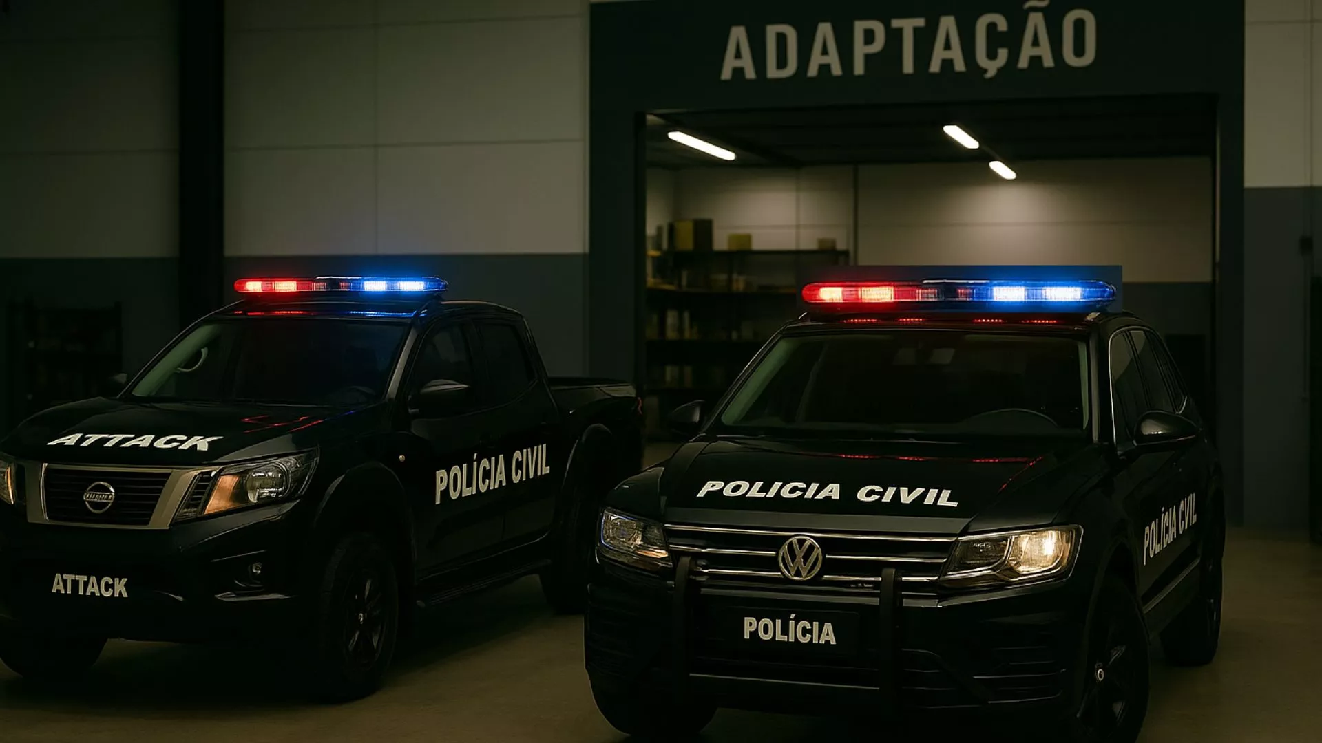 Adaptação completa de viaturas descaracterizadas e operacionais. Instalação de sinalização audiovisual, cela de transporte e identidade visual padronizada.